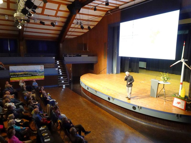 Sulz am Neckar konnte durch eine Veranstaltung am 19. Februar 2025 trumpfen mit dem ehemaligen Umweltsenator der SPD in Hamburg, Prof. Dr. Fritz Vahrenholt, der auch als Autor von Büchern über die Energiewende und den Klimawandel bekannt ist, gemeinsam mit Betroffenen der Auswirkungen von Windindustrieanlagen im Wald und in der Nähe von Wohngebieten. Theo Feger vom Verein Windvernunft an Wolf und Kinzig im Schwarzwald und Dipl.-Ing. Martin Fuss aus dem Schurwald beschrieben die Probleme, die der Ausbau mit Windkraft direkt vor Ort mit sich bringt.