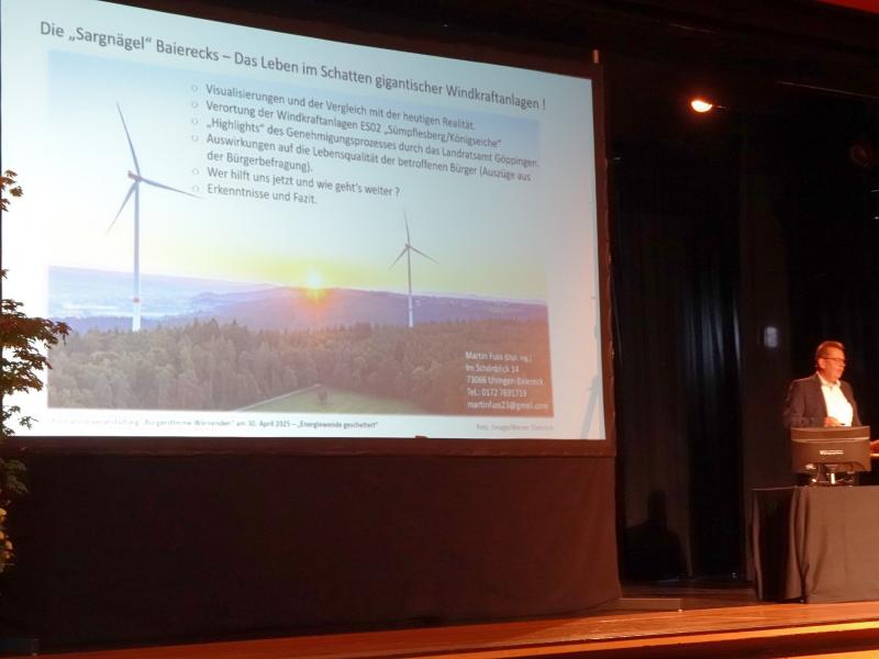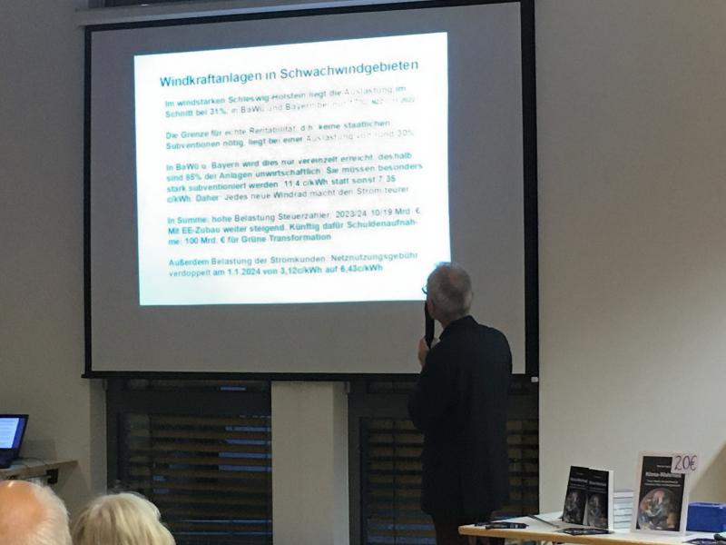 Geballtes Wissen über die Energiewende und ihre Auswirkungen konnte man auf zwei Veranstaltungen von Bürgerinitiativen in Baden-Württemberg bekommen. Der Diplomphysiker Dieter Böhme sprach am 03. April 2025 in Hohenstadt auf der Schwäbischen Alb bei der Bürgerinitiative (BI) „Nicht unsere Zukunft“ und am 04. April 2025 in Holzgerlingen bei Böblingen im Raum Stuttgart bei der BI „Pro Natur Ehningen“ über die Grenzen der Energiewende, insbesondere der Energieerzeugung durch Windindustrieanlagen und über deren Auswirkungen im Infraschallbereich. Dabei wurde deutlich, dass die Schutzmechanismen der TA-Lärm bei den monströsen Anlagen nicht greifen.