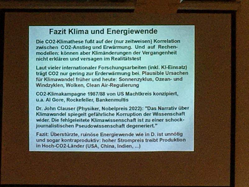 Prof. Dr. Fritz Vahrenholt, ehemaliger Umweltsenator in Hamburg und Autor kritischer Bücher zum Klimawandel und zur Energiewende, sieht die Energiewende als nicht umsetzbar an und warnt vor einer Deindustrialisierung Deutschlands. Wie der aktuelle Blackout in Spanien im April 2025 gezeigt hat, kann mit volatilem Wind- und Sonnenstrom die Versorgungssicherheit nicht gewährleistet werden. Außerdem steigen die Kosten der Energieversorgung ins unermessliche und auch eine Umweltverträglichkeit dieses industriellen Eingriffs in die Naturräume (Stichwort „sauberer Strom“) sieht er nicht gegeben.