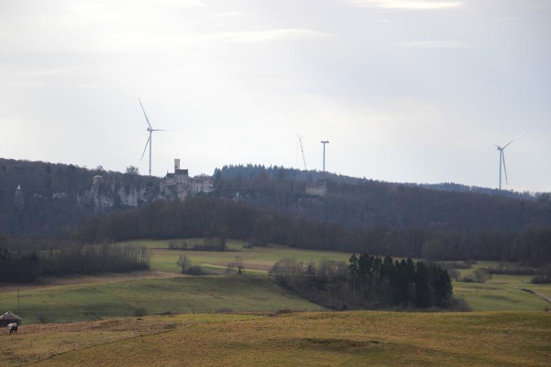 Direkt hinter dem Schloss und vor einer der beliebtesten Schauhöhlen im UNESCO Global Geopark Schwäbische Alb, der Bärenhöhle mit seinem Freizeitpark, stehen nun fünf Windindustrieanlagen des Windparks Sonnenbühl/Hohfleck mit 198 m Gesamthöhe.