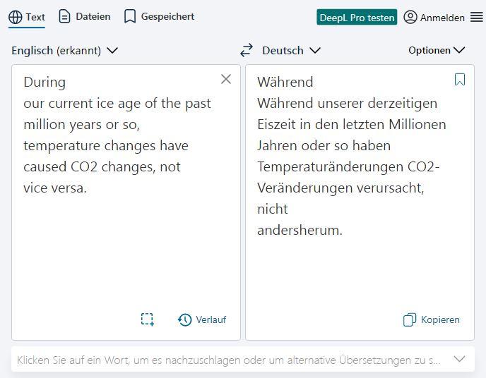 [1] Während In unserer aktuellen Eiszeit der letzten Millionen Jahre oder so, haben Temperaturänderungen die CO2-Änderungen verursacht und nicht umgekehrt. CO2 ist nicht der Drehknopf für die Temperatur oder das Klima der Erde…
